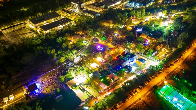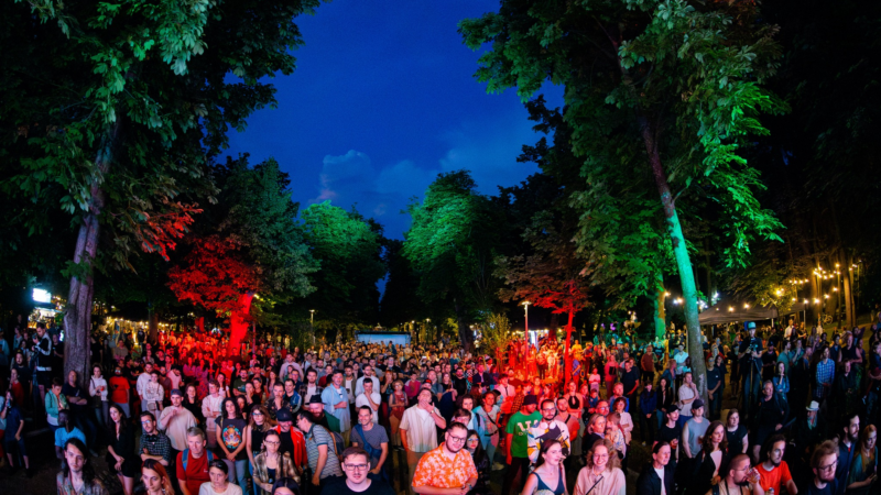 It is said that beginnings can be tough, but for us, the first day at Jazz in the Park went very smoothly. At 12:30 PM, the Ethnographic Park buzzes with bustle; and not just any bustle, as this activity seems to unite all the people here. There's a feeling that something important is about to happen, but it is also peaceful, familiar, giving you a sense of well-being. Part of the team is carrying benches, sweat trickling down their temples, while others are tightening the last screws at Hill Stage; among the last-minute technical details being sorted out, a little girl tries to reach a branch too high, hanging from which is a wild apple.